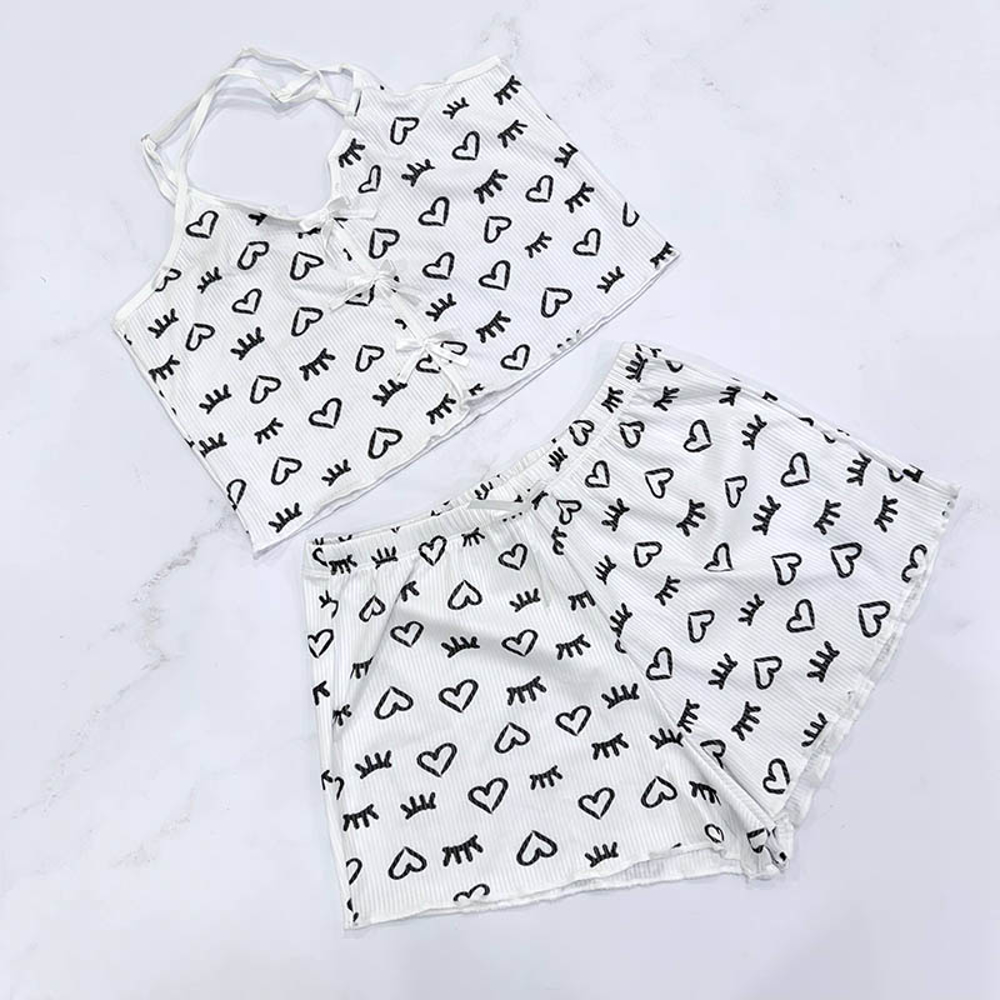 ست تاپ شورتک زنانه کبریتی با طرح پارچه چشمک و قلب مشکی از اون مدلهای هست که طرفدارهای بسیار زیادی داره حالا میگی چرا؟ چون در عین حال که راحت هست و میتونید شب موقع خواب بپوشید بشدت تحریک کننده و اروتیکه