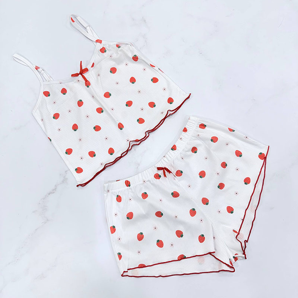 ست تاپ و شورتک زنانه کبریتی مدل توت فرنگی کد T1866