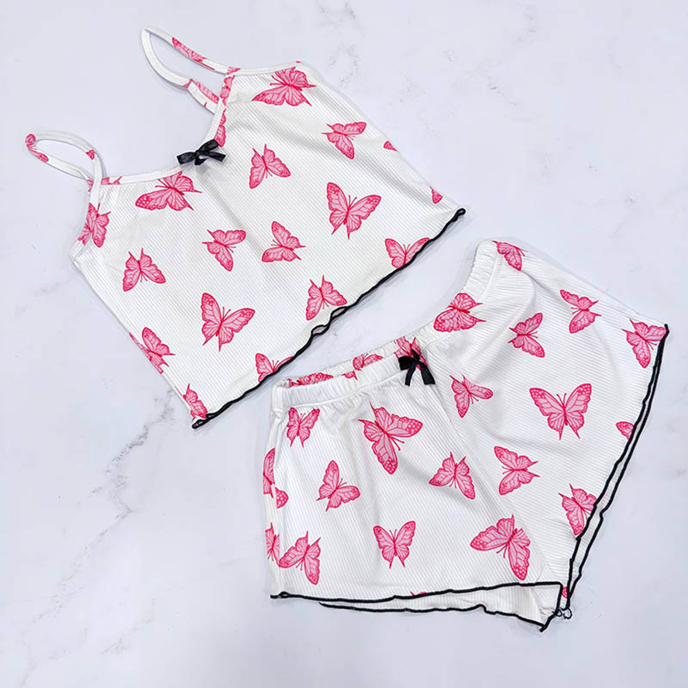 ست تاپ و شورتک زنانه کبریتی مدل پروانه کد T1870