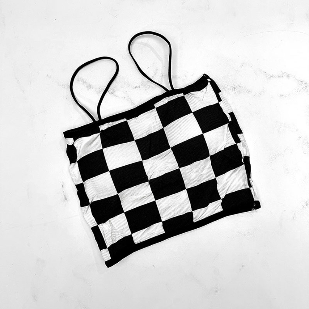 نیم تنه کراپ زنانه وارداتی مدل اسپرت شطرنجی کد 13692
