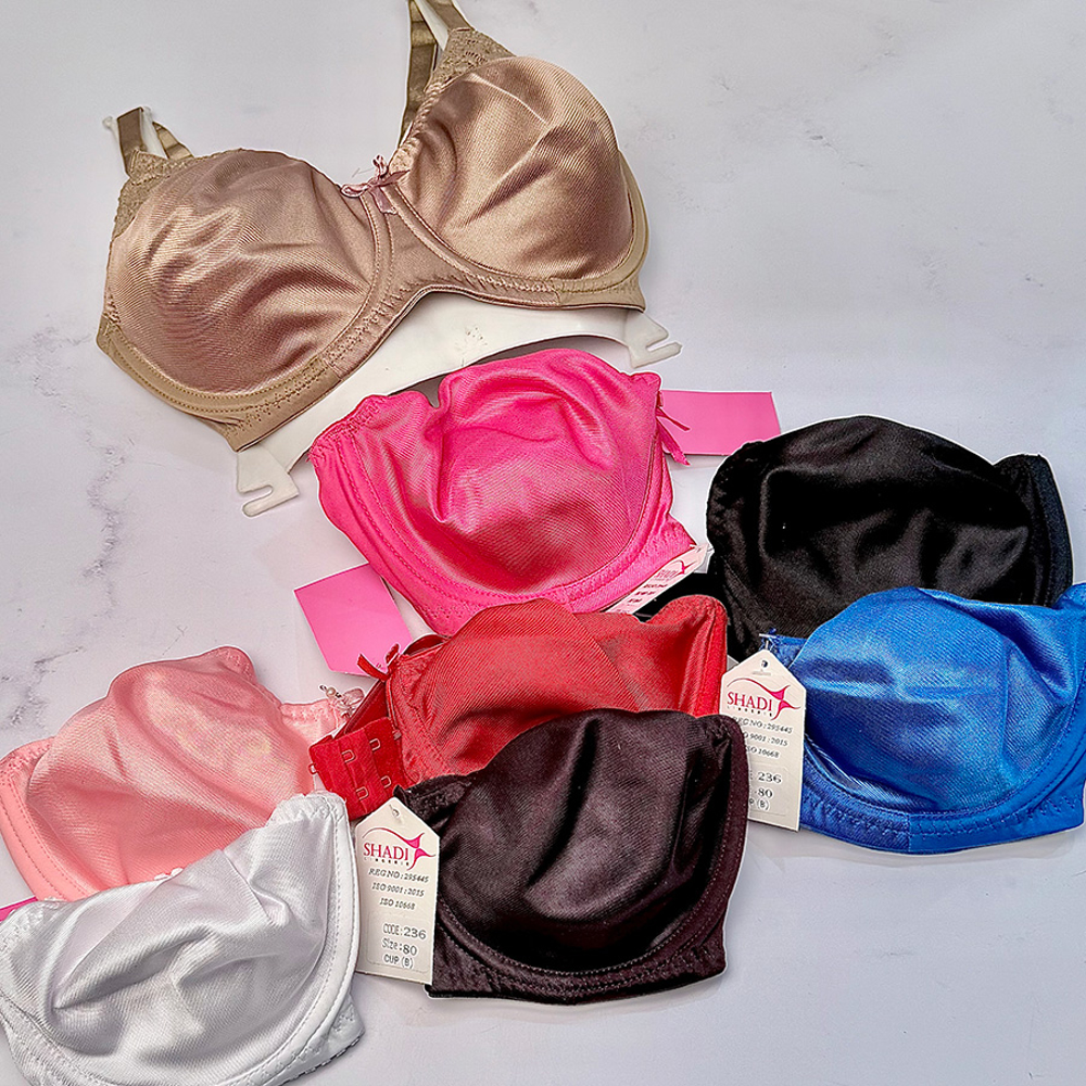سوتین زنانه پرلون ساتن براق فنردار کاپ B برند شادی کد 236