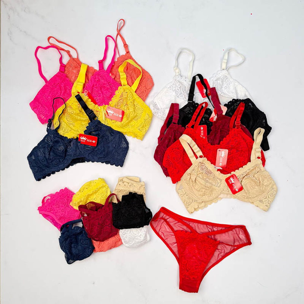 ست لباس زیر شورت و سوتین دانتل دانبری فنردار کاپ B برند HR کد 09